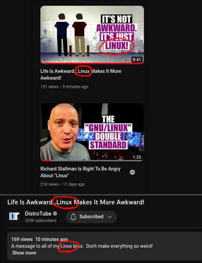 Context: 11 days ago DT released a video where he called out the people who refer to Linux distributions as “Linux” as opposed to “GNU/Linux”. Today he released a video where he did exactly that.