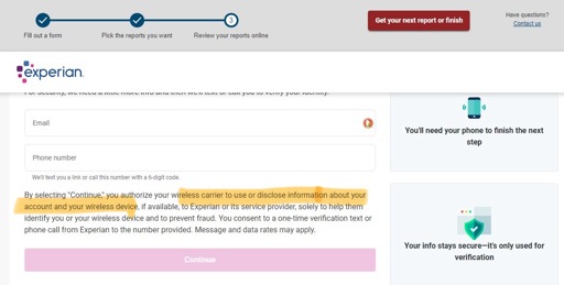I spent the weekend researching data removal methods and decided to start with my credit report. I’m not even going to get into all of the alarming privacy invasions that popped up during this process. But when I got to the experian report, I was met with T&C box that says I have to hand over my phone carrier info and it wouldn’t let me proceed without doing so. The bureaus are legally required to give you one free report a year. It’s bad enough that these companies are even given rights to my data and now they’re using it to request further information.