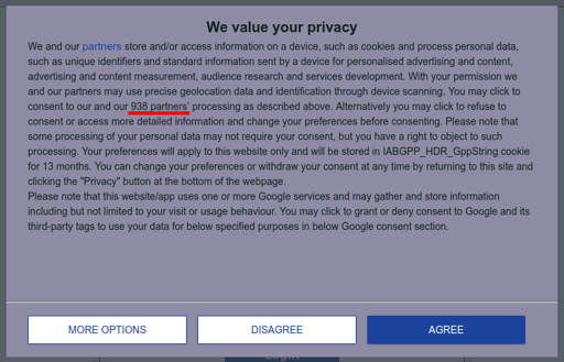 - We and our 938 partners value your privacy - And don’t forget these partners have other partners of their own.