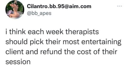 arrow-up10arrow-down1imageOnce I said to my therapist "I'm sure you hear this kind of thing all the time", and she said "No, this is like top 5".lemmy.worldBonesOfTheMoon@lemmy.world to memes@lemmy.world · 4 months agomessage-square4linkfedilinkfile-text