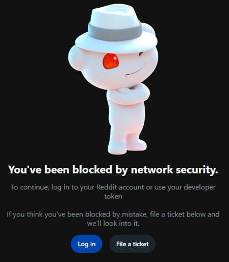 same as title, recently got a new pc and installed my vpn from my thumb drive so i wouldnt connect to the internet at all without a VPN and i notice on this pc my connection gets blocked every time i try to go to reddit, which isnt often with fosscad being removed.