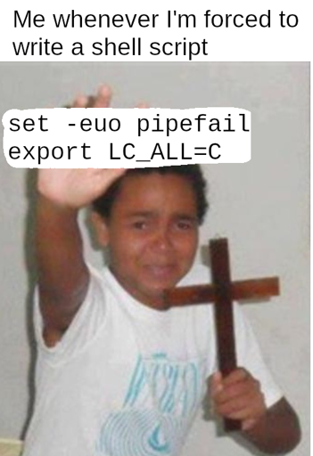 The two lines in the meme change the shell’s behavior to be slightly less headache-inducing for the programmer: