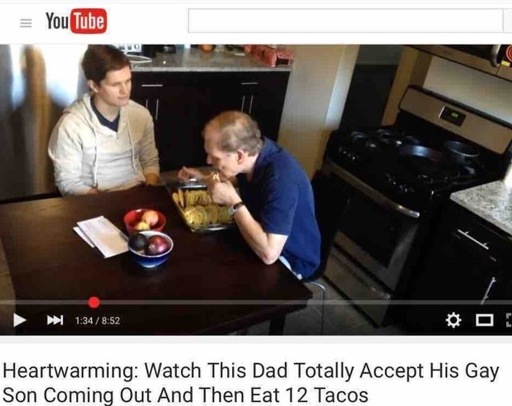 Nonono you‘re mixing it up: the eating of the 12 tacos is done by the parent of the gay son to pay respect to all the „tacos“ the son won’t ever eat.