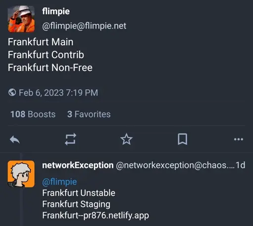 The German city name Frankfurt isn’t unique. That’s why the cities often have an identifier. The biggest and most well known Frankfurt is located at the river Main and therefore called Frankfurt (Main). Main is also used as description in programming which is where the rest of the joke is coming from.
