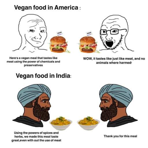 One of these cultures has normalised vegan and vegetarianism for centuries, the other is trying to wean a meat-obsessed population.