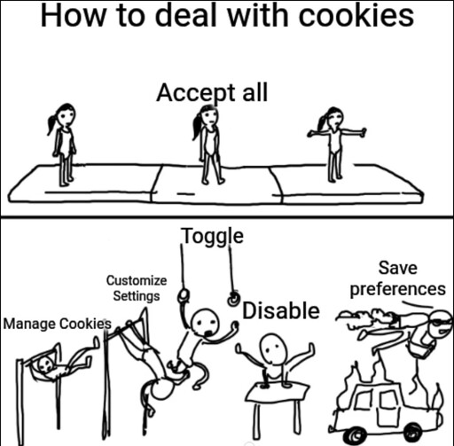 Or maybe its even worse than that. Before you could just have the cookies deleted. But if you do that now you get the awful popup every time, so you just accept them in the end.