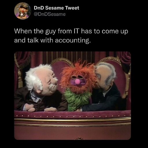 Lady Butterfly she/her@reddthat.com to memes@lemmy.world · 4 days agoCan anyone in IT confirm?reddthat.comimagemessage-square70linkfedilinkarrow-up1868arrow-down112