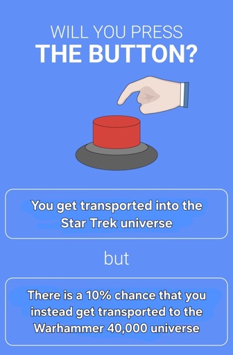 You narrowly avoid Warhammer as you see you’re on the Enterprise. You’re called for a mission. Shortly before you’re beamed down you see it. You look down.Your heart starts racing. You’re wearing a red shirt.
