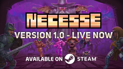 Necesse Version 1.0 is now live on steam!Experience the infinite seamless world, the vast endgame of incursions or just chill out and build a nice base!To se...